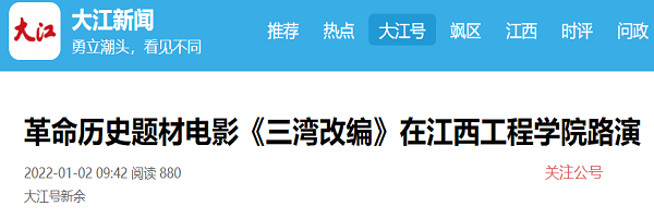 2021年12月31日,重大革命历史题材电影《三湾改编》在beat365体育官方网站路演。新余市影视家协会会员、新余市作家协会会员、beat365体育官方网站师生共三百余人观影。