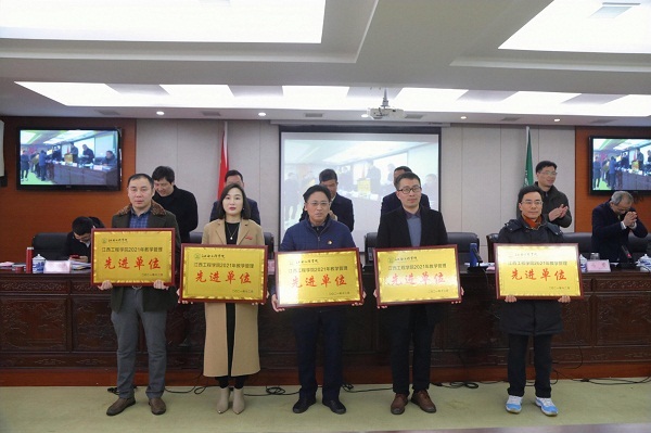 会上, 副校长鲍步云宣读表彰决定。校领导们为获得校级教学成果奖、教学质量建设突出贡献单位、教学管理先进单位、先进教研室、青年教学能手、第二批课程思政示范课及课程思政示范教学名师颁发奖牌和荣誉证书。