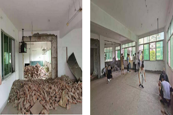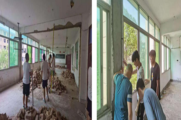 2、完成校内工程转化项目一个,土木工程学院承接总校教学楼教室改造工程项目,通过学校自身工程项目的转化,培养学生的实践动手能力。