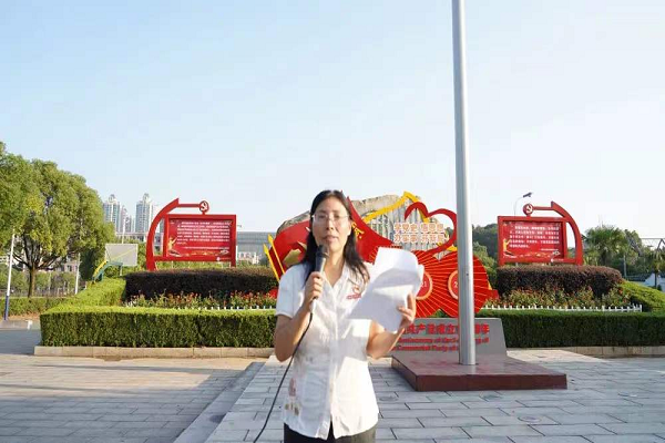 15、如果信念有颜色,那一定就是中国红。在建党一百周年及即将迎来祖国72个生日之际,外语外贸学院于9月27日上午7:00在国旗广场举行升旗仪式。党总支书记、院长车婧,党总支副书记王雄,全体2021级学生参加。