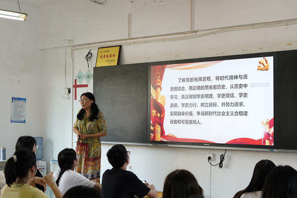 25、9月23日下午外语外贸学院党总支书记、院长车婧开展“以青春之姿,赓续精神血脉”的党史教育学习课。课程围绕了解党的历程,将时代精神与历史相结合,做到知行合一,争当社会主义合格建设者和可靠的接班人而展开,让同学更加了解明白中国共产党的艰辛历程,使党史教育内化于心外化与行,努力做一个担当复兴大任的时代新人!