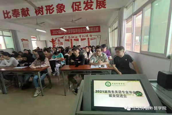 为了完善毕业生的就业工作,构建毕业生与用人企业单位的桥梁,促进校企合作关系进一步发展,并为毕业生们提供就业指导和发展前景观瞻建议,外语外贸学院于3月23日对2021届毕业本科生进行了专场招聘会宣讲。外语外贸学院全体毕业生参加本次招聘会,招聘会的主讲人为外语外贸学院14届学姐谭利华。