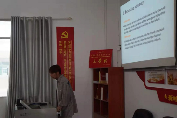 青年如初春,如朝日,如百卉之萌动,如利刃之新发於硎。为了能够让同学们更好地融入“大众创业,万众创新”的时代热潮,了解国家互联网+项目的建设发展,树立健康向上的创新创业观念,更快地提升自身的创新创业能力,10月27日,下午15:30,外语外贸学院组织开展“互联网+创新创业”大赛,为同学们倾力打造展现互联网+创新创业活力的舞台。