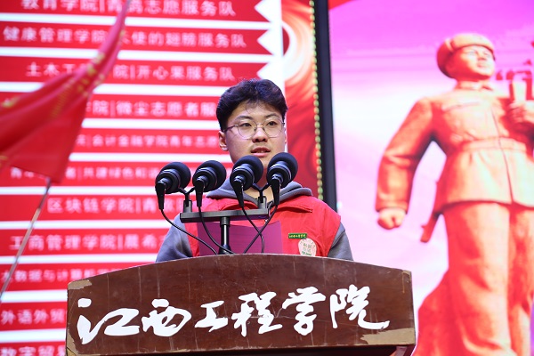 志愿者代表范成伟同学进行了发言,倡议全体师生向雷锋同志学习,积极参与志愿服务活动传承并弘扬志愿服务精神。校领导对寒假期间积极参与“返家乡”社会实践活动的优秀个人进行了颁奖 。全体师生一起宣誓,坚定决心以雷锋同志为目标,奉献自我,成为人民的“螺丝钉”。