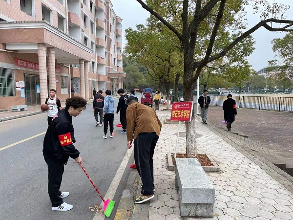 启动仪式结束后,全体志愿者进行了校园清扫活动,他们扫的扫,撮的撮,捡的捡,垃圾装满一兜又一兜,他们不怕脏,不怕累,他们身穿红马甲穿梭在每一条路上,认真地清理每一处的垃圾。