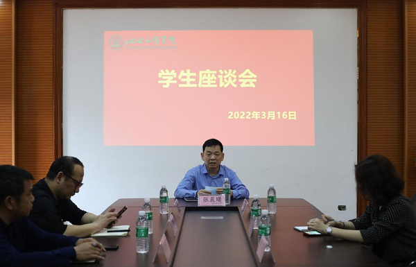 (本网讯 黄宏丽 报道)为切实解决疫情形势下学生在学习、生活中遇到的困难,有效征集学生的意见与建议。3月16日下午,校党委副书记、校长张晨曙主持召开了仙女湖校区学生座谈会。党委副书记冯赟出席会议,校长办公室、学工处、教务处、后勤处等职能部门负责人以及仙女湖校区各学院的30余名学生代表参加了此次座谈会。