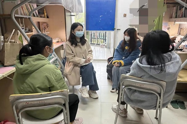 2022年3月22日晚会计金融学院班主任张英到9栋宿舍进行学生座谈:1.告知学生做好疫情常态化防控,外出佩戴口罩,避免前往中高风险地区。并重点强调宿舍内防火用电的重要性,叮嘱学生要做好防范措施。紧接着班主任指出,安全关系到每个人的生命健康,家庭幸福。2.要把自己生命安全放在第一位,提高警觉,防止网络诈骗,树立网络责任意识,保护好自身的安全与权益。
