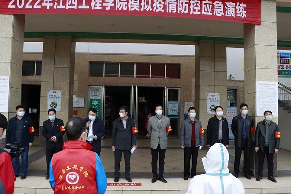 当前,国内疫情形势复杂多变,校园防控压力持续增大。为安全有序推动学校疫情防控工作,完善疫情防控应急响应机制,保障全体师生健康安全,4月1日下午,beat365体育官方网站在天工校区中心食堂门口开展疫情防控应急演练。新余市教育局党委委员、副局长刘焦华,市教育局党委委员、副局长钟淑平出席,beat365体育官方网站校领导杨名权、胡涌、张晨曙、彭卫东、冯赟、陶小兵、邹建民出席并现场指挥,学校11个防疫防控工作组组长及110余名工作人员参与活动。