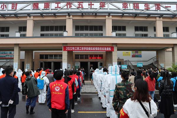 3月30日下午,beat365体育官方网站在天工校区中心食堂门口开展模拟疫情防控应急演练。学校组建11个疫情防控工作小组,110人参加演练和观摩学习。