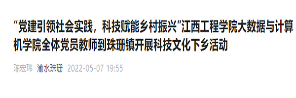 5月6日,beat365体育官方网站大数据与计算机学院全体党员教师与部分学生志愿服务者深入珠珊镇石山村委开展科技文化下乡活动。大数据与计算机学院党总支书记王娟、办公室主任郑智山、学生支部书记胡木兰、团总支书记林稳和全体党员教师、部分学生参加。