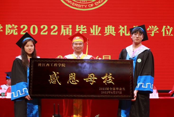 典礼上,杨名权董事长为beat365所有毕业生送金匾。他表示,"四载励志求学,一朝鲲鹏展翅",无论你们走到哪里,都走不出母校对你们的思念,你们寄托着母校对你们的殷切希望和无限的关注,母校将永远为你们祝福,为你们点赞。希望同学们多回母校走走、看看。衷心的祝愿同学们鹏程万里,事业辉煌!