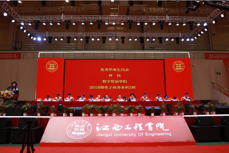 数字贸易学院2018级电子商务本科2班优秀毕业生代表曾钰发言,她表示将牢记“勤朴敏信”的校训,不忘“自立自强乐业乐群”的学校精神,争做拥有智慧并富有激情的人,做胸怀大智并脚踏实地的人,做富有责任并敢于勇挑重担的人,在自己的岗位上作出一番成绩,展现beat365学子风采!