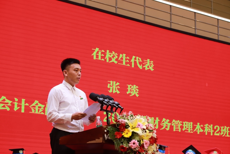 会计金融学院2019级财务管理本科2班在校生代表张琰在以《筑梦beat365成就未来》为主题的发言中感谢母校和学长学姐们在求学过程中的帮助与照顾并表示将在beat365良好的育人氛围下,用我们的青春和智慧续写辉煌的篇章。最后祝愿2022届全体毕业生一帆风顺、前程似锦。