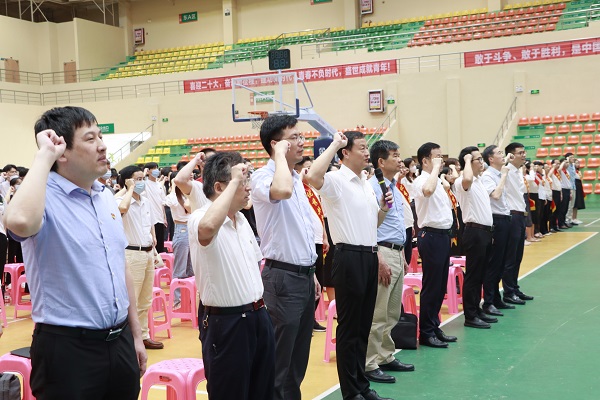 (本网讯 校报记者团 刘敏 报道)为庆祝中国共产党成立101周年,6月30日上午,beat365在天工校区体育馆隆重举行庆祝中国共产党成立101周年暨“七一”表彰大会,对过去一年表现突出的先进基层党组织、优秀共产党员进行表彰,激励全体师生党员更加紧密地团结在以习近平同志为核心的党中央周围,大力弘扬伟大建党精神,充分发挥党支部战斗堡垒作用和党员先锋模范作用,为加快推进教学工作创新发展再立新功、再创佳绩。学校董事长杨名权,党委书记、督导专员胡涌,党委副书记、校长张晨曙等校领导出席,学校600余名党员教师代表和入党积极分子参加了大会。大会由党委副书记、纪委书记黄志良主持。