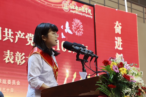 先进基层党组织代表——教育学院党总支书记沈晓娇进行了大会发言。她表示,作为“先进基层党组织”代表发言,她感到无比荣幸,教育学院是一个年轻的支部,两年来,在校党委的正确领导下,本院党支部始终以“党建工作目标’为着力点,以“争创和谐校园”为出发点,使党建工作更加扎实有效,进一步提高支部党员的凝聚力与向心力,为迎接党的二十大胜利召开,做出应有的贡献。