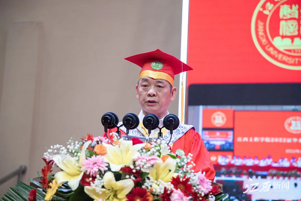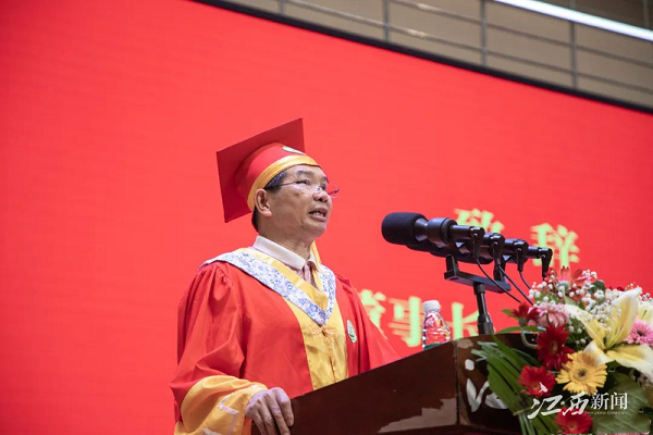 董事长杨名权给全体毕业生提了三点建议:一是崇尚真知做“智者”,子曰“知者不惑”,大家应紧跟主流,拒绝“躺平”思想,将知识转化为智慧,学会运用知识去理性思辨、创新思路、批判思考、科学思维,追求真善美,拒绝假丑恶,胸怀家国情,走好人生路。二是学会宽容做“仁者”,子曰“仁者不忧”,他希望同学们有仁爱之心,用宽容的态度对待别人,用博大的胸怀悦纳自己,活出诗意的人生,书写人生的精彩。三是敢于挑战做“勇者”。子曰“勇者不惧”,勇敢的人不会畏惧,因为他有坚强的意志,他希望同学们始终饱含对生活的信心,“道之所在,虽千万人吾往矣”。