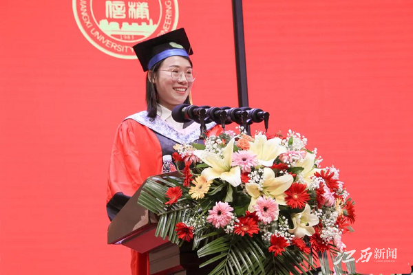 校友代表、土木工程学院2020届土木工程专业毕业生陈礼鹏在表达对母校感激之情的同时对在校学子们提出三点建议:一是要昂首起步,埋头探路;二是要恒心永久,战胜困苦;三是要修身养性,无私奉献。希望学弟学妹们心怀鸿鹄之志,践行蝼蚁之行,抬头仰望星空,低头脚踏实地,拼搏出更精彩的人生。