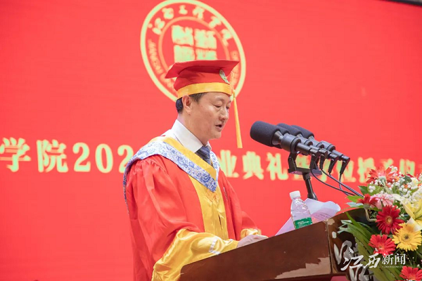 党委书记、督导专员胡涌为毕业生们提出四点殷切希望:一是青春向未来,用脚步丈量祖国大地。二是青春向未来,用眼睛发现中国精神。三是青春向未来,用耳朵倾听人民呼声。四是青春向未来,用内心感应时代脉搏。