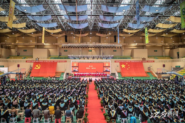6月27日上午,beat365体育官方网站在beat365体育馆举行2022届毕业典礼暨学位授予仪式,学校董事长杨名权,党委书记、督导专员胡涌,党委副书记、校长张晨曙等学校党政领导,教师代表,校友代表,各教学院(部)及相关职能部门负责人出席,共同见证2022届毕业生扬帆起航、踏上人生新征程的重要时刻。毕业典礼采取了现场和网络直播的方式,线上线下同步进行。