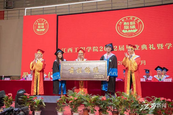党委副书记冯赟在典礼上宣读《关于表彰2022届三好学生、优秀学生干部的决定》。在主席台就座的校领导为获表彰者颁奖。副校长鲍步云宣读《关于表彰2022届优秀本科毕业生、优秀毕业论文(设计)、本科毕业设计(论文)优秀指导老师、考取研究生学生的表彰决定》。
