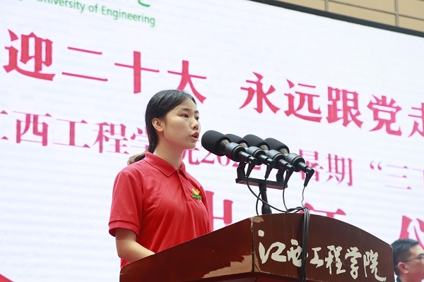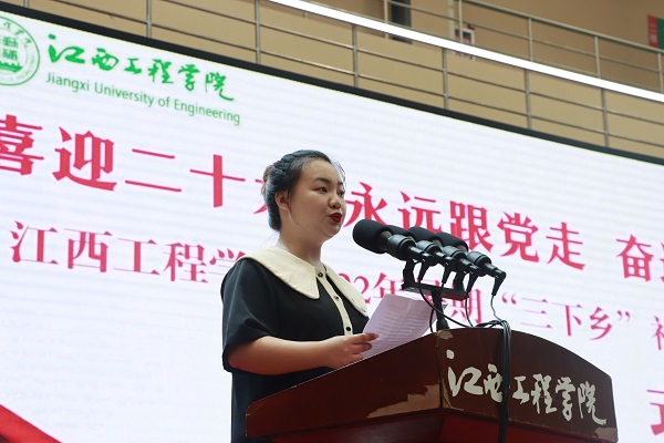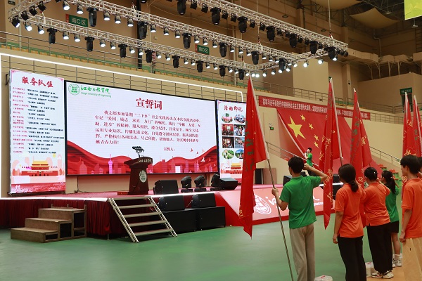 青年志愿者代表章黎敏带领全体师生庄严宣誓,每一句誓词都代表着同学们对本次“三下乡”社会实践活动的信心与决心,同时也代表着他们对青年志愿活动的支持与参与。大学生志愿者暑期“三下乡”社会实践活动是广大青年学生了解社会、认识国情,增长才干、砥砺品格的重要途径,是新时代下加强和改进大学生思想政治教育的有效载体,也是广大青年学生发挥智力优势、传播现代文明、服务社会发展的重要形式。