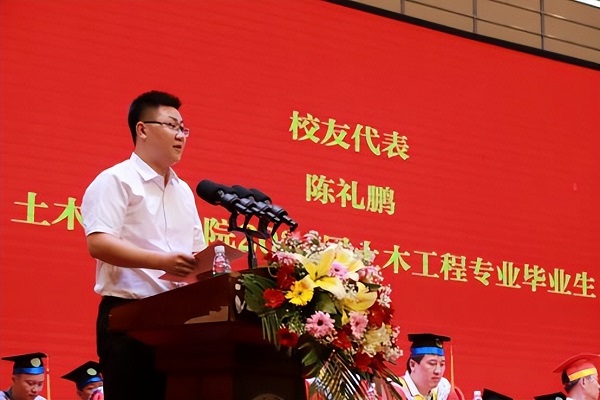 在毕业典礼上,陈礼鹏寄语学弟学妹,并用三句话与同学们共勉。