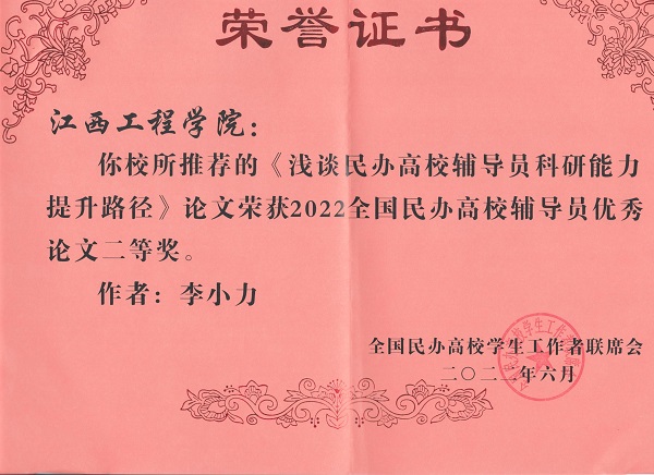 6月25日-26日,全国民办高校学生工作者联席会组织召开第六届全国民办高校优秀辅导员颁奖典礼暨2022年全国民办高校辅导员工作云论坛。会议采取线上直播的形式,会上邀请教育部思想政治教育专家、高校学生辅导专家、全国高校辅导员年度人物做专题报告。论坛期间,联席会举行了2022年全国民办高校优秀辅导员和全国民办高校辅导员优秀论文颁奖典礼,beat365辅导员郭远峰被评为“第六届全国民办高校优秀辅导员”,学生工作处副处长李小力《浅谈民办高校辅导员科研能力提升路径》论文荣获优秀论文二等奖。