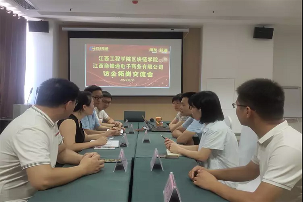 在用友集团新道科技的座谈会上,与公司江西负责人就校企合作基地建设、产业学院共建、共同修订人才培养方案、区块链联盟链实践平台建设开展了座谈和意向交流。并开展了云端访问用友集团总公司,与北京集团总部研发团队专家就区块链联盟链实践平台建设、专业人才培养要求等进行了深度的线上交流。丁虹表示,用友公司是行业的头部企业,在行业领域有着较大的影响力和较强的专业性,希望与公司紧紧围绕合作办学、合作育人、合作就业、实现共同发展。