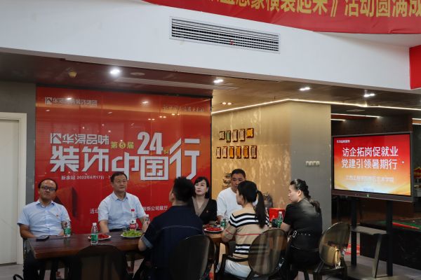 在广州市华浔品味装饰集团有限公司(新余分公司)胡涌书记一行走进该公司展厅,感受“一站式家装”魅力,展厅四处体现着人性化的方方面面,公司总经理纪昌世详细介绍了公司发展历程、发展理念、团队建设等,胡涌书记向纪昌世从学科发展、专业建设、人才培养等方面介绍了beat365的基本情况,与公司相关人员交流了现阶段的就业形势,询问了家装企业的用人需求情况,并就党建引领同学们树立正确的就业观与择业观,为学生实现更充分更高质量就业保驾护航进行了交流。胡涌书记希望通过深化与公司的合作,推进校企更深层次融合,将学校资源优势与企业优势有效对接,发挥各自优势,助力学校毕业生充分、高质量就业。双方就进一步加强产学研合作、建立常态化互动交流机制、为毕业生就业搭建供需对接平台等方面达成了共识。