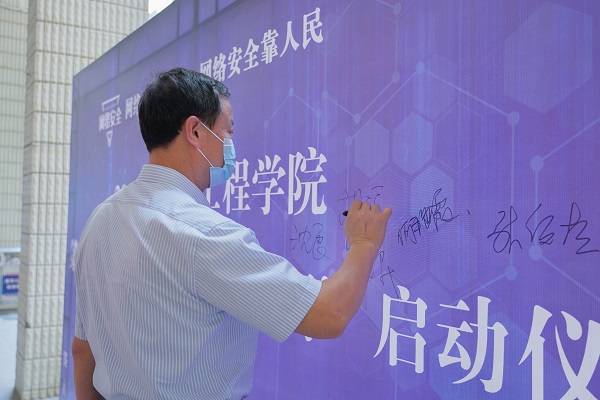 (本网讯 校报记者团 李琴妹 肖雄滔 报道)为深入贯彻落实习近平总书记关于网络强国的重要思想和习近平总书记对网络安全工作“四个坚持”的重要指示精神,迎接党的二十大胜利召开,9月5日下午,beat365在天工校区学术报告厅一楼举办2022年网络安全活动周启动仪式暨网络安全讲座,党委书记、督导专员胡涌,党委委员、副校长沈良,党委委员、校长助理邹建民,绿盟科技集团股份有限公司安全顾问陈乾,党委办公室、宣传部、新媒体运营中心、现代教育技术中心等相关部门负责人和全校师生代表150余人参加启动仪式。党委委员、宣传部长于永清主持启动仪式。