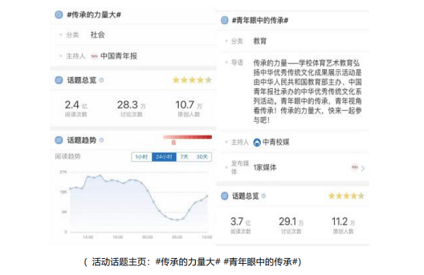 每逢重要节日,《传承的力量》特别节目都会集中展示学校体育艺术教育传承中华优秀传统文化的成果。今年端午节,中国青年报·中青校媒组织大学生积极发声,开展线上线下传播活动,引导大学生紧跟主流。而全国各地大中小学校的老师、同学们创作了大量文艺作品,通过这样的方式弘扬中华优秀传统文化。
