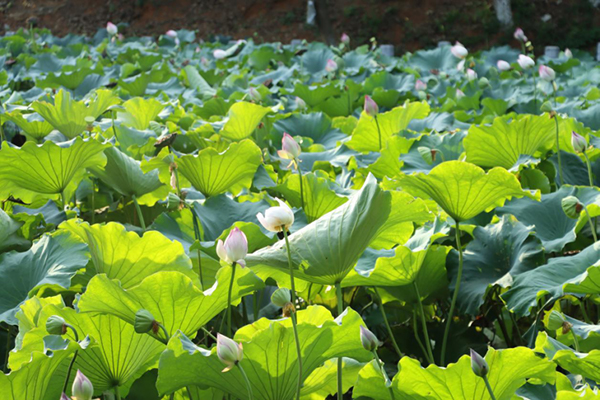 沁心湖默默地在水一方,我站在远处眺望,只见清清的水中倒影里矗立着亭台楼阁,飘荡着柳影白云,我的心融化在这一汪碧水里。