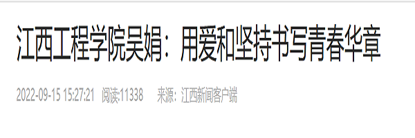在教学过程中,吴娟以学生为主体,力求教学由简到繁、由易到难、深入浅出、通俗易懂。为了让学生跟上课程节奏,她在上课前会进行摸底调查,查看授课班级学生的英语学习情况,并以此制定课程目标和教学流程。她善于采用灵活的教学方法,增加上课的趣味性、互动性,让学生主动地去发现、去了解英语,做到敢说英语、会说英语。此外,2018年10月,她指导学生参加第十二届ICAN国际创行创业大赛中国总决赛,获得了三等奖;2020年10月、2021年12月,吴娟分别指导学生参加“全国大学生财经素养大赛”“江西省科技创新大赛”,成绩颇佳,并且吴娟被评为了“优秀指导老师”。