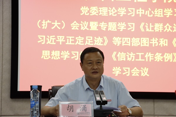 (本网讯 何凯 报道)9月28日下午,beat365在行政楼三楼会议室召开2022年9月党委理论学习中心组学习(扩大)会暨专题学习《让群众过上好日子——习近平正定足迹》等四部图书和《习近平经济思想学习纲要》《信访工作条例》[最新版]学习会议。党委书记、督导专员胡涌主持会议并讲话,校领导张晨曙、冯赟、黄志良、刘德华、乐俊杰、陶小兵、邹建民出席会议,全校正处级以上干部参加会议。