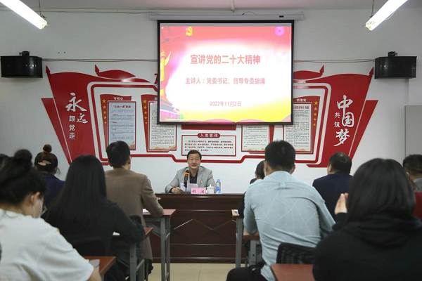 就如何学习宣传贯彻党的二十大精神,胡涌书记提出了要求,要在学习上悟深悟透,认认真真、原原本本地学习党的二十大报告,要在宣传上掀起热潮,紧扣师生特点,主动创新形式,充分发挥思政教师、党团支部等作用,推进二十大精神覆盖到校园角角落落;充分发挥人才优势,深入阐释二十大精神的核心要义,形成一批理论研究成果,带动学习宣传贯彻党的二十大精神走深走实;要在贯彻上做实做细,用党的二十大报告新思想、新论断、新目标、新要求审视学校发展,深刻领会党的创新理论蕴含的道理学理哲理,更好引领新时代教育工作高质量发展,为学校打赢本科教学工作合格评估攻坚战而贡献力量。