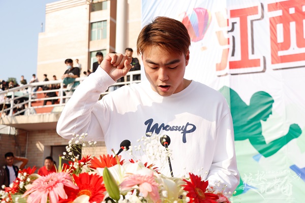 运会员代表、人工智能学院徐昊煜宣誓,表示要以高昂的斗志和顽强拼搏的精神,积极参赛、严守纪律、遵守规则。