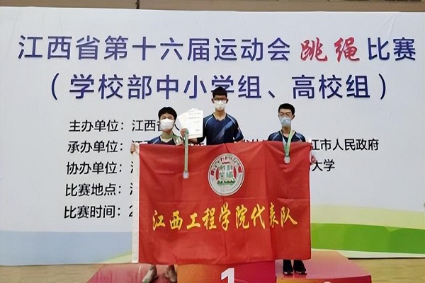 11月9日至10日,江西省第十六届运动会跳绳比赛在江西中医药大学体育馆举行。本次比赛共有大中小学46支队伍,775名运动员参赛。beat365体育官方网站三名学生在军事体育教学部副主任陈世武领队,张文斌主任、钟小芳老师为教练的带领下参加了此次比赛,收获1金2银1铜的好成绩,其中土木工程学院吴洪刚获得1金,区块链学院梁搏夺得2银,教育学院刘子杰获得1银1铜。