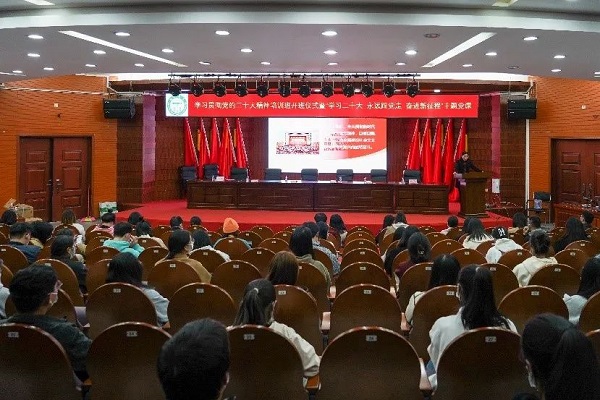 乘风破浪扬帆劲,奋楫笃行开新篇。为深入学习贯彻党的二十大精神,切实把全院师生的思想和行动统一到会议精神上来,把力量凝聚到实现党的二十大确定的各项任务上来。11月17日,外语外贸学院开展 “学习二十大、永远跟党走、奋进新征程”主题党课,由校党委委员、副校长沈良宣讲。