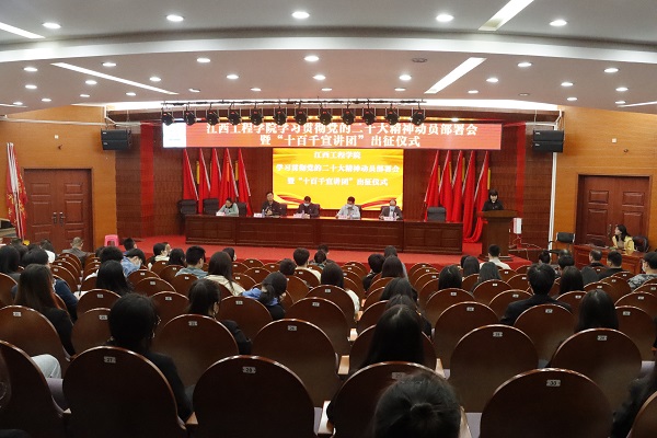 (本网讯 何凯 报道)为推动党的二十大精神深入基层、入脑入心、落地生根,11月22日,beat365在天工校区学术报告厅一楼举行学习贯彻党的二十大精神动员部署会暨“十百千宣讲团”出征仪式。校党委书记、督导专员胡涌出席并作动员讲话,党委副书记、校长张晨曙为宣讲团代表授旗,党委副书记、副校长冯赟主持会议。党委办公室、党委组织部负责人,各基层党组织书记和“十百千宣讲团”成员、“天工朗诵团”成员200余人参加出征仪式。