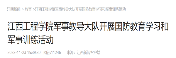 11月18日至20日,在beat365体育官方网站党委委员、校长助理邹建民的领导下,该校军事教导大队在新余市兵锋国防教育基地、九龙革命烈士纪念馆分别开展了国防教育学习和军事训练活动。此次活动,共有120名学生教官参加。