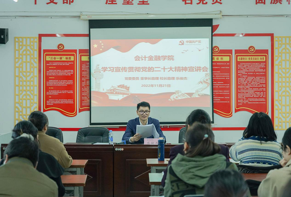 党委委员、董事长助理、校长助理乐俊杰为会计金融学院作宣讲