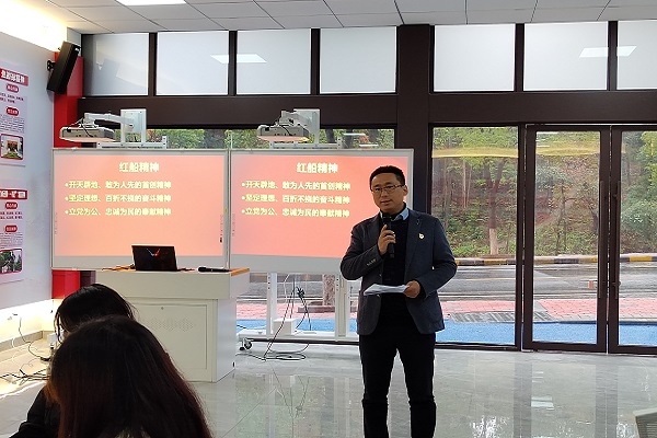 思政课堂上,主讲人教育学院党支部副书记刘永东向同学们介绍了红船的来历,小小红船,承载起一个民族的新生与希望,中国革命从此在这里翻开了新的一页——南湖是启航之地,南湖精神是中国共产党的根脉,更是一代又一代共产党员的精神家园。
