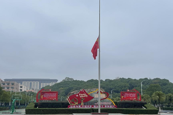 学校董事长杨名权,党委书记、督导专员胡涌,党委副书记、校长张晨曙等校党政领导班子成员在行政楼七楼会议室收听收看追悼大会。学校各基层党组织在党员活动室、班级等具备收看的场所设立分会场组织全体师生集中观看。