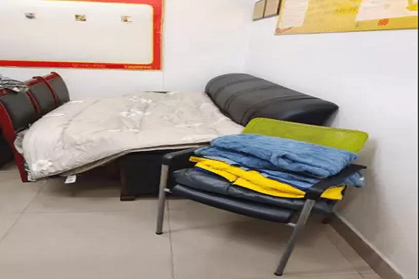 夜幕降临,何丽书记在忙完一天的工作后,回到办公室的“战地小窝”进行休息。在进入梦乡前,她为自己打气:加油!明天又是精神满满的一天!