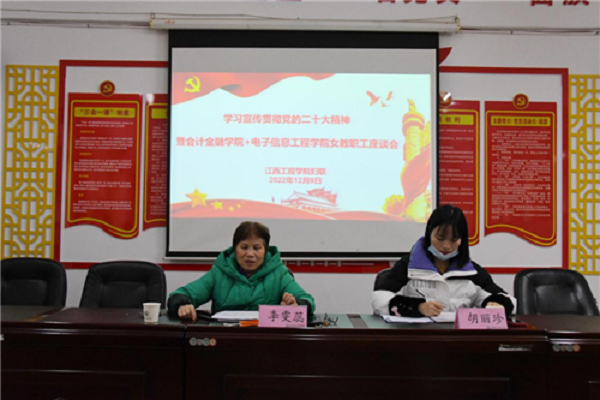 2022年12月9日下午,beat365妇联深入会计金融学院组织开展党的二十大宣讲活动,学习宣传贯彻党的二十大精神,引领广大妇女群众奋进新征程、建功新时代,会计金融学院全体女教师参加了活动。
