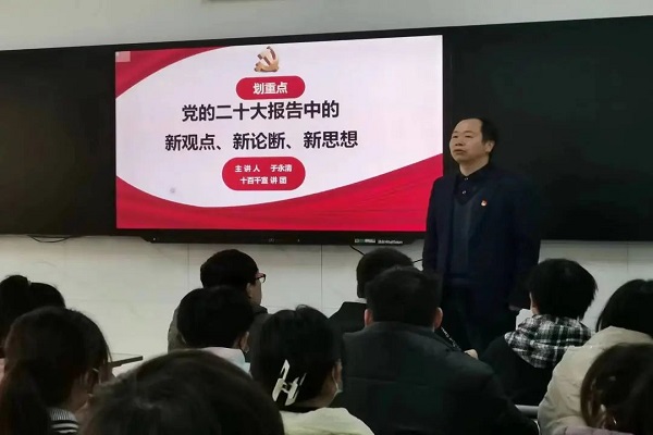 为提高大数据与计算机学院基层党组织思想政治水平和能力,深入学习党的二十大精神,进一步做好校园疫情防控管理工作,大数据与计算机学院党总支于12月7日上午在C栋409开展党的二十大报告宣讲活动。此次宣讲由学生党支部书记胡木兰主持,校党委委员、宣传部部长于永清主讲。全院学生党员及部分入党积极分子参加。