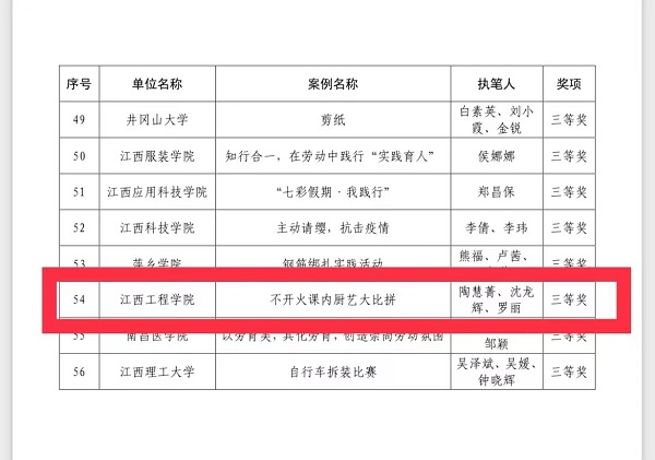 (本网讯 许江 报道)近日,为加快推进我省大学、中学、小学和幼儿园劳动教育,省教育厅决定在全省范围内评选一批省级劳动教育典型案例和优秀劳动清单。经过层层筛选,beat365《不开火课内厨艺大比拼》劳动案例荣获三等奖。