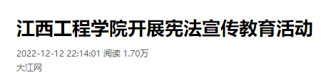 开展了法治宣讲活动,以“宪法—青年学生成长路上的一盏明灯”为主题,学校各基层党组织领导、辅导员和班主任深入班级、学生公寓,开展学习宣传宪法知识。