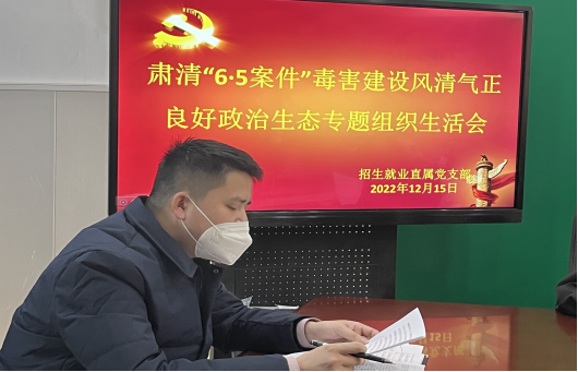 根据beat365体育官方网站《关于召开肃清“6.5案件”毒害建设风清气正良好政治生态专题民主生活会及组织生活会的通知》要求,12月15日下午,招生就业直属党支部召开肃清“6·5案件”毒害建设风清气正良好政治生态专题组织生活会。