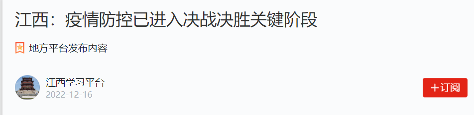 12月15日,江西举行新冠肺炎疫情防控工作新闻发布会(第三十七场),就全省疫情防控工作作出通报:在艰苦卓绝的三年抗疫斗争中,江西取得了重大战略成果。当前,疫情防控已进入决战决胜的关键阶段。